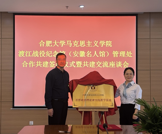 326日,我院與渡江戰役紀念館(安徽名人館)管理處在安徽名人館舉行合作共建簽約儀式暨共建交流會。渡江戰役紀念館(安徽名人館)管理處副書記、副處長路文舉,馬克思主義學院直屬黨支部書記、副院長蘇冰和部分教師代表出席了共建交流會。