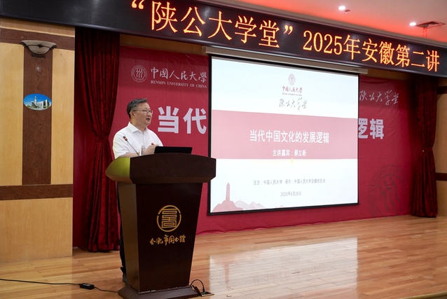 629日下午,“陜公大學(xué)堂”2025年安徽第二講于合肥市圖書館三樓學(xué)術(shù)報(bào)告廳開講。本次講座由中國人民大學(xué)主辦,中國人民大學(xué)安徽校友會與合肥市圖書館聯(lián)合承辦,安徽大學(xué)馬克思主義學(xué)院與合肥大學(xué)馬克思主義學(xué)院協(xié)辦。來自中國人民大學(xué)馬克思主義學(xué)院的教授郝立新,作了題為《當(dāng)代中國文化的發(fā)展邏輯》的專題報(bào)告。馬克思主義學(xué)院全體師生出席報(bào)告會。