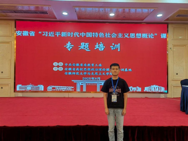 8月20日至24日,安徽省2025年“習近平新時代中國特色社會主義思想概論”課專題培訓班在蕪湖舉辦。本次培訓由中共安徽省委教育工委主辦,安徽省高校思想政治理論課教師培訓基地、安徽師范大學馬克思主義學院承辦,我院陶德強老師參加了此次學習。 本次培訓聚焦新時代黨的創(chuàng)新理論,采取理論教學和實踐教學相結(jié)合的方式展開。專家學者們圍繞“習近平新時代中國特色社會主義思想概論”教材的重難點解析、中國式現(xiàn)代化理論體系、新質(zhì)生產(chǎn)力與經(jīng)濟高質(zhì)量發(fā)展等議題進行了深入解讀,并就怎樣提升思政課教學和展示實效性,如何將習近平新時代中國特色社會主義思想有機融入課堂教學、創(chuàng)新教學方法、提升育人實效等重要問題進行了細致講解。 參加專題培訓是學院加強思政課教師隊伍建設、提高思政課教學質(zhì)量的重要舉措。通過本次集中學習,進一步提升了參訓教師對習近平新時代中國特色社會主義思想整體性、系統(tǒng)性、學理性的認識,對于今后教學中更好地講好這門關(guān)鍵課程具有重要的促進作用。(圖/文:陶德強) |