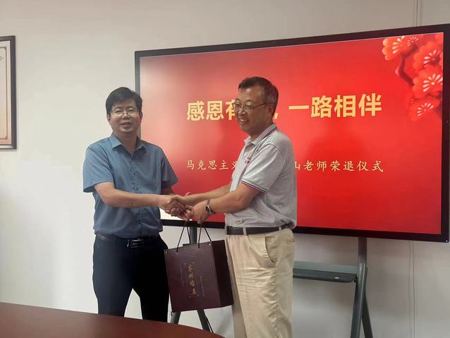 馬克思主義學院舉行退休教師榮休儀式為增強退休教師的成就感、幸福感和榮譽感,充分體現對退休教師的關懷,進一步激發全院教師愛崗敬業、恪盡職守的熱情,8月30日下午,馬克思主義學院全體教師齊聚一堂,在會議室舉行姜從山老師的榮休儀式。馬克思主義學院院長陳志超、馬克思主義學院副院長蘇冰及學院全體教師參加,儀式由副院長蘇冰主持。 儀式上,副院長蘇冰首先介紹了姜從山老師37年教書育人的工作歷程和十幾年熱心公益、無私奉獻的大愛行動,對姜從山老師為學院、學校和社會做出的貢獻表達了深深的敬意。 院長陳志超向姜從山教師為學院和學校發展作出的貢獻表示了真摯感謝,并高度贊揚了姜老師投身公益、大愛無疆的奉獻精神和熱忱之心。強調姜老師不僅做好教師的本職教育工作,兢兢業業,站好三尺講臺,講好思政課,更是在生活中弘揚偉大的奉獻精神,12年來累計捐獻血液38200毫升,累計志愿服務時長3000多小時,榮獲全國無償獻血奉獻獎終身榮譽獎、全國無償獻血奉獻獎金獎和安徽省教科文衛體系統師德先進個人、合肥好人等稱號。陳志超院長動情指出,老教師是馬克思主義學院的寶貴財富,也是青年教師奮發向上不斷學習的榜樣,呼吁青年教師學習姜老師的優秀品質。 與會教師共同交流回顧了與姜從山教師共事的點點滴滴,對姜老師兢兢業業、刻苦鉆研精神和無私奉獻、樂于助人的高貴品質表達了誠摯敬意,并向他送上了美好祝愿。 姜從山老師回憶了自己從教三十多年的經歷,講述了自己一生與教育事業的不解之緣和熱衷公益的初心與恒心,并深情感懷對學校和同事的深厚感情以及對學校和學院發展的美好期許。 會上,彭慧艷老師作為青年教師代表向姜老師獻上鮮花,陳志超院長代表學院全體教師向姜老師送上禮物表達美好的祝愿。 此次榮休儀式,體現了馬克思主義學院對退休教師的尊重和關心,溫暖了參加榮休儀式的全體教師,奮楫篤行、弦歌不輟,繼往開來、薪火相傳,這次榮休會將激勵全體教師為學院發展做出更大的貢獻。 (馬克思主義學院) |