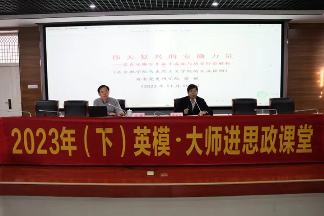 為深入學(xué)習(xí)百年黨史,深入了解安徽在民族復(fù)興歷史征程中的重要地位和作用,近日,馬克思主義學(xué)院特邀中共安徽省委黨史研究院(安徽省地方志研究院)副院長(zhǎng)苗鍵來(lái)校作專題報(bào)告。報(bào)告會(huì)開始前,吳春梅校長(zhǎng)在學(xué)術(shù)報(bào)告廳接待了苗鍵副院長(zhǎng),向他表示歡迎和感謝,并與他進(jìn)行了親切交談。馬克思主義學(xué)院領(lǐng)導(dǎo)班子成員、全體教師和相關(guān)學(xué)院學(xué)生代表共計(jì)120余人參加報(bào)告會(huì),報(bào)告會(huì)由馬克思主義學(xué)院負(fù)責(zé)人主持。