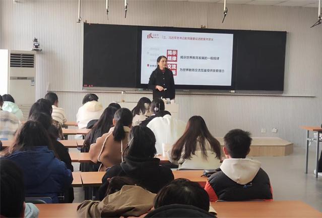 陳秀為大學(xué)生上思政課 為切實(shí)發(fā)揮學(xué)校領(lǐng)導(dǎo)在思政課建設(shè)中的示范帶頭作用,2023年12月6日,陳秀副院長(zhǎng)深入教學(xué)一線,在37棟403教室為23級(jí)數(shù)學(xué)與應(yīng)用數(shù)學(xué)專業(yè)學(xué)生講授了一堂有高度、有深度、有情懷、有溫度的思政課。 陳秀副院長(zhǎng)指出,習(xí)近平總書記關(guān)于教育的重要論述是師范專業(yè)學(xué)生的必修課,我們要深刻理解習(xí)近平總書記關(guān)于教育的重要論述的科學(xué)內(nèi)涵和重大意義。她希望同學(xué)們既刻苦鉆研理論知識(shí),又積極掌握專業(yè)技能,立足國(guó)際視野、家國(guó)情懷、集體精神和創(chuàng)新思維的新時(shí)代人才基本需求,不斷提高與時(shí)代發(fā)展要求相適應(yīng)的素質(zhì)和能力,做到德智體美勞全面發(fā)展,努力成長(zhǎng)為黨和人民需要的有用之才。最后,她結(jié)合師范專業(yè)特點(diǎn),強(qiáng)調(diào)立德樹(shù)人是教育的根本任務(wù),以身作則地告訴同學(xué)們要高標(biāo)準(zhǔn)嚴(yán)格要求自己,錘煉扎實(shí)本領(lǐng),努力成為一個(gè)有理想信念、有道德情操、有扎實(shí)學(xué)識(shí)、有仁愛(ài)之心的“四有”好老師,肩負(fù)起時(shí)代賦予的重任。 陳秀副院長(zhǎng)精彩生動(dòng)的思政課為將來(lái)走向教師工作崗位的師范生以思想啟迪。課后,同學(xué)們紛紛表示會(huì)牢記陳秀副院長(zhǎng)的囑托和要求,刻苦學(xué)習(xí),不斷提高自己的專業(yè)技能和素養(yǎng),無(wú)愧于時(shí)代、無(wú)愧于人民、無(wú)愧于青春。(馬克思主義學(xué)院)