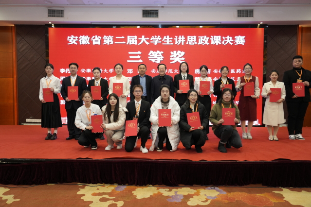 我校學子在安徽省第二屆大學生講思政課比賽決賽中取得佳績2023年12月22日,安徽省第二屆大學生講思政課決賽落下帷幕。我校徐萌萌團隊作品《新思想 新格局 新青年——建設具有強大凝聚力和引領力的社會主義意識形態》(指導教師:蘇冰,李雯雯)榮獲決賽三等獎。 此次“大學生講思政課”比賽分為初賽、片區賽和決賽三個階段,以“新思想引領新征程·新青年建功新時代”為主題,旨在引導廣大青年學生熱愛思政課、學好思政課,主動參與思政課教學、主動思考研究現實問題。活動自啟動以來,我校馬克思主義學院高度重視、精心部署,廣泛動員廣大師生積極報名,踴躍參加。校賽環節,圍繞思政課6門主干課程,參賽團隊展開演練試講,經過角逐,最終6支隊伍推薦至片區賽。片區賽環節,徐萌萌同學和張波老師指導的趙格格同學所在團隊分別榮獲皖中片區二等獎和三等獎,徐萌萌團隊進入決賽。決賽環節,來自全省22所高校的42支團隊同臺競技。 “大學生講思政課”活動是安徽省深入貫徹落實黨的二十大精神,推進“大思政課”建設,發揮思政課立德樹人關鍵課程作用的重要舉措。未來,我校將持續做好“大學生講思政課”品牌活動,以賽促學、以學促教,不斷提高思政課的針對性和吸引力,深入推進思政課改革創新。(徐萌萌/文圖 蘇冰/審核 武奎/編發) |