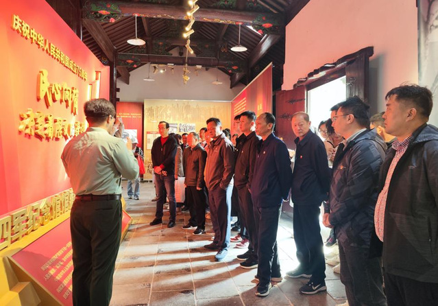 在講解員的帶領下,大家有序進入展廳,共同踏上了一條探尋新四軍輝煌壯闊歷史的征程。展覽共分為“民族危急 鐵軍出山”“為民浴血 英勇抗戰”“踐行初心 改善民生”“人民戰爭 奪取勝利”四個部分。黨員們在參觀過程中不時駐足凝視,認真聆聽講解。通過一件件珍貴的革命文物展品,生動再現了新四軍為新中國誕生所歷經的艱難險阻與巨大犧牲,以及他們取得的輝煌戰果與不朽功勛,充分彰顯了新四軍為黨和人民事業立下的不朽功勛,黨員們也深切體會到新四軍將士們為民族獨立和人民解放事業所做出的巨大犧牲與不懈努力,內心深受觸動。
