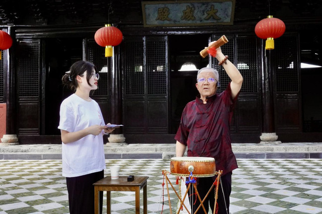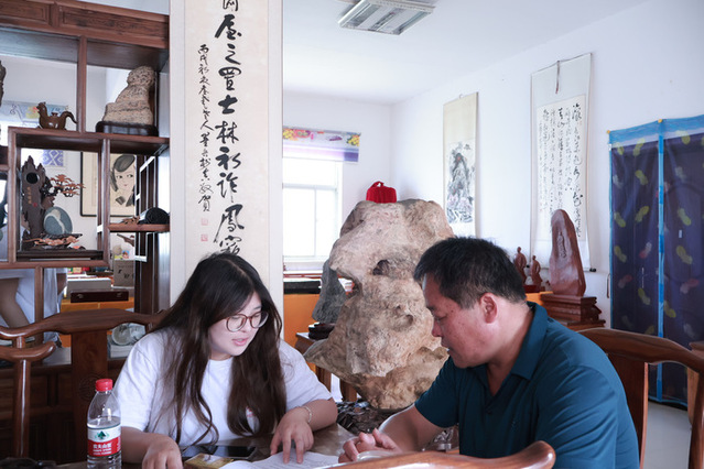 在唐山鎮(zhèn),團隊尋訪了紫金制作工藝省級非遺傳承人邱金保,通過訪談,全面了解了紫金硯制作的復雜工藝,深刻體會到這一傳統(tǒng)技藝背后的歷史積淀。在壽縣老文化館,團隊專訪了壽州大鼓省級非遺傳承人魏明華與口技快板非遺傳承人李勛,兩位老師以精彩紛呈的表演,充分展現(xiàn)了壽縣傳統(tǒng)曲藝的獨特魅力。然而,團隊成員也了解到,非遺傳承正面臨著人才短缺、后繼乏力等嚴峻形勢,這引發(fā)了他們對傳統(tǒng)文化保護與傳承的深刻思考。