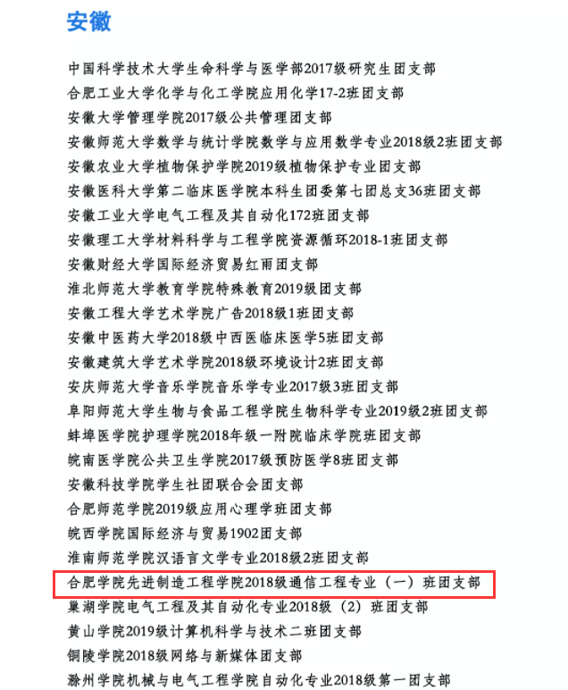 為深入貫徹落實“全團大抓基層”、“全團抓學校”部署,深化高校共青團改革,強化“一切工作到支部”理念,4月,團中央啟動了“活力團支部煉成記”2020—2021學年高校活力團支部遴選及展示活動,我校積極推薦優秀團支部申報評選。日前,2020-2021年度全國高校“活力團支部”名單公布,我校先進制造工程學院2018級通信工程1班團支部入選。