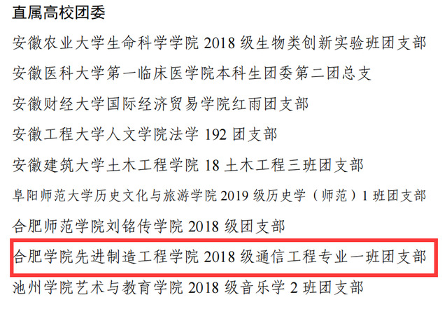 安徽省“兩紅兩優”評選是新形勢下全面推進團的基層組織建設、活躍基層共青團工作的重要載體,“安徽省五四紅旗團支部”“安徽省優秀共青團員”是共青團安徽省委授予全省基層團組織和團員的最高榮譽。我校學子2019、2020、2021連續三年獲評“安徽省優秀共青團員”,充分肯定了我校共青團組織高舉團旗跟黨走,堅持服務學生成長成才的育人工作成效。