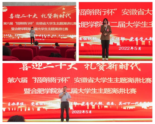 5月26日,合肥學院“喜迎二十大、禮贊新時代”第二屆大學生主題演講比賽在圖書館報告廳舉行。比賽由黨委組織部、黨委宣傳部、黨委學工部、團委、關心下一代委員會聯合舉辦。安徽省演講學會會長崔躍松、招商銀行云谷路支行行長胡婧、教育學院教授魯世秀、黨委學工部思政教育中心主任黃銳、校團委副書記李妍妍擔任評委。