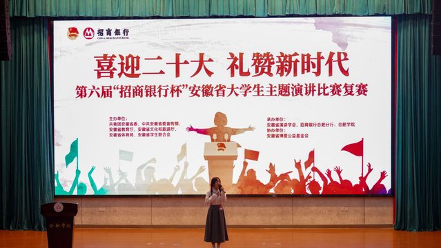 9月17日,第六屆“招商銀行杯”安徽省大學(xué)生主題演講比賽復(fù)賽在我校舉辦。本次比賽旨在學(xué)習(xí)貫徹落實(shí)習(xí)近平總書記在慶祝中國(guó)共產(chǎn)主義青年團(tuán)成立100周年大會(huì)上的重要講話精神,團(tuán)結(jié)引領(lǐng)廣大團(tuán)員青年堅(jiān)定跟黨走,以實(shí)際行動(dòng)迎接黨的二十大勝利召開(kāi)。