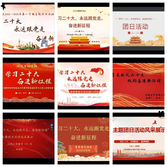 為深入學習宣傳貫徹黨的二十大精神,團結引領我校青年將大會精神落實到行動上,用黨的科學理論武裝青年,用黨的初心使命感召青年,鼓勵青年在學習中堅定理想信念,在實踐中練就過硬本領。10-11月,我校300多個基層班級團支部和34個社團團支部開展了以“學習二十大,永遠跟黨走,奮進新征程”為主題的線上團日活動。