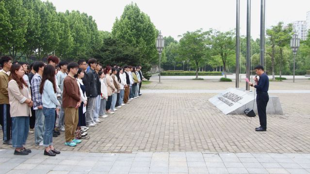 校團委書記張應杰代表學校共青團對新發展團員表示熱烈祝賀,并對新團員提出三點期望:希望他們要明確政治方向,提高思想覺悟,做思想堅定的馬克思主義者;希望他們要重視學習,善于思考,勇于實踐,做知行合一的踐行者;希望他們要甘于奉獻,勇擔使命任務,做堪當民族復興大任的接班人。