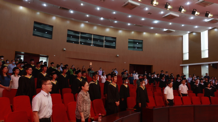 校學位評定委員會全體成員入場后,2020屆本科生畢業典禮正式開始,典禮在莊嚴的國歌聲中拉開了帷幕。
