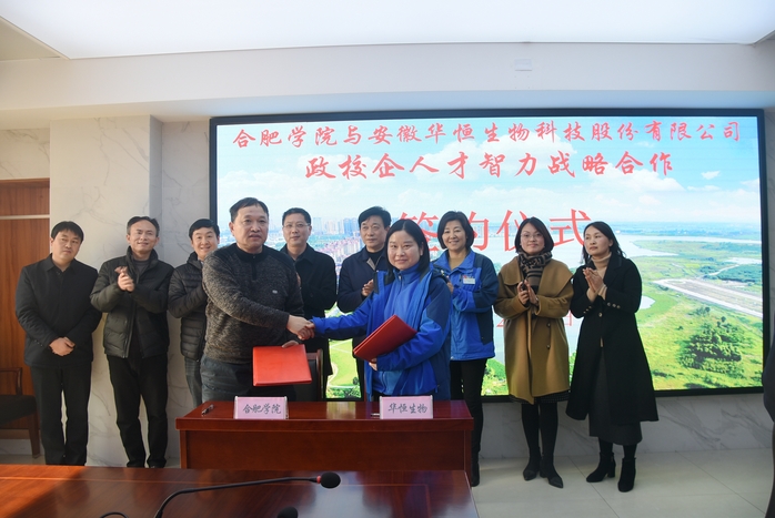 在劉建中、童有柱等人的見證下,朱濤與陳志云簽訂校地人才智力戰(zhàn)略合作框架協(xié)議,檀明與安徽舜禹水務(wù)股份有限公司簽訂校企合作框架協(xié)議,俞志敏與安徽華恒生物科技股份有限公司簽訂校企合作框架協(xié)議。