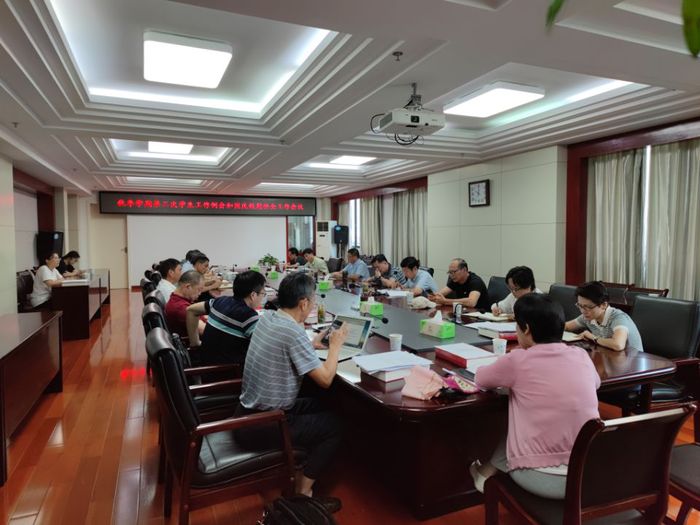 根據上級關于疫情防控工作相關安排與要求,結合我校工作實際,9月30日上午,學校在九樓東會議室召開秋季學期第二次學生工作例會和國慶假期安全工作會議。校黨委委員、紀委書記查凱出席會議,相關職能部門負責同志、各二級學院黨委書記參會,會議由校黨委委員、學生處處長朱濤主持。