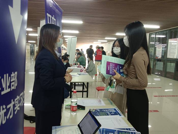活動現場,企業代表為畢業生們詳細介紹了企業文化、招聘要求并耐心解答了學生們的疑難困惑,雙方就就業細節等交換了意見。畢業班輔導員老師們也積極為學生們推薦工作。招聘會期間,校就業指導中心學生助理積極引導、熱心服務,現場井然有序,實現了疫情防控和促進就業兩不誤的目標。