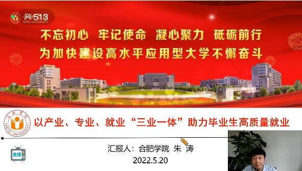 為多措并舉促進2022屆高校畢業生更加充分更高質量就業,5月20日上午,浙江省、江蘇省、安徽省和上海市高校組織了百日沖刺·精準就業——華東3省1市線上論壇。本次論壇邀請了浙江大學、東南大學、合肥學院、北森生涯研究院做分享交流。我校黨委委員、黨委學生工作部部長朱濤參加論壇,并對我校就業工作經驗作交流分享。