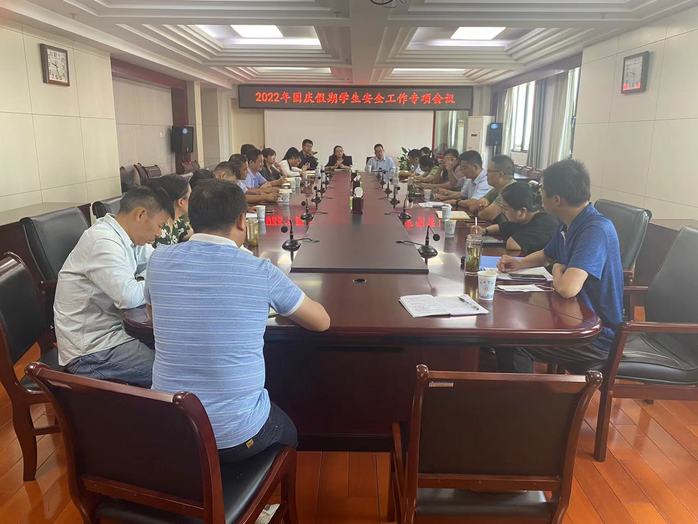 會上,陶龍澤傳達合肥市疫情防控應急指揮部《關于做好全市教育系統2022 年國慶假期及前后新冠肺炎疫情防控工作的通知》,要求各二級學院落實上級工作安排,做好相關工作部署。學生事務中心副主任劉磊就學校國慶假期學生安全工作相關細節要求作了介紹說明,要求規范學生離校管理,加強學生安全教育,做好學生心理幫扶,落實應急值守保障。