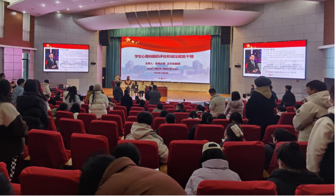 為進一步加強我校學工隊伍和學生骨干對大學生心理問題的評估與干預能力,12月28日上午,蘇州大學王爾東主任受邀在我校圖書館報告廳A廳作“學生心理問題的評估和減壓賦能干預”專題講座。各學院黨委副書記,全體輔導員,班級心理委員,學校專兼職心理咨詢老師等參加了本次講座。