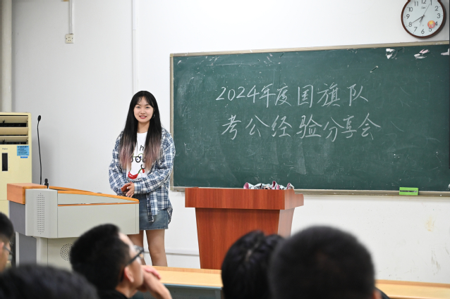 退役大學(xué)生士兵、20計(jì)科的張政同學(xué)分享了自己的軍旅生活。他梳理了24屆退役畢業(yè)生的就業(yè)情況,鼓舞學(xué)弟學(xué)妹們響應(yīng)國家號(hào)召,攜筆從戎,實(shí)現(xiàn)夢想。20金融專業(yè)的吳云卓同學(xué)分享了自己備戰(zhàn)考公過程中的心路歷程變化。兩位同學(xué)向大家介紹了關(guān)于考公的相關(guān)信息,以及如何有效查找就業(yè)信息的方法,提升了大家對(duì)職業(yè)、就業(yè)的認(rèn)知。從他們的求職過程中,可以看到他們所為之付出的努力和汗水,也讓在座的同學(xué)們收獲了經(jīng)驗(yàn)。與此同時(shí),豐富的經(jīng)驗(yàn)分享為即將走上未來道路選擇的同學(xué)們挑起了明燈。分享環(huán)節(jié)結(jié)束后,同學(xué)們積極提出問題與學(xué)長學(xué)姐交流。