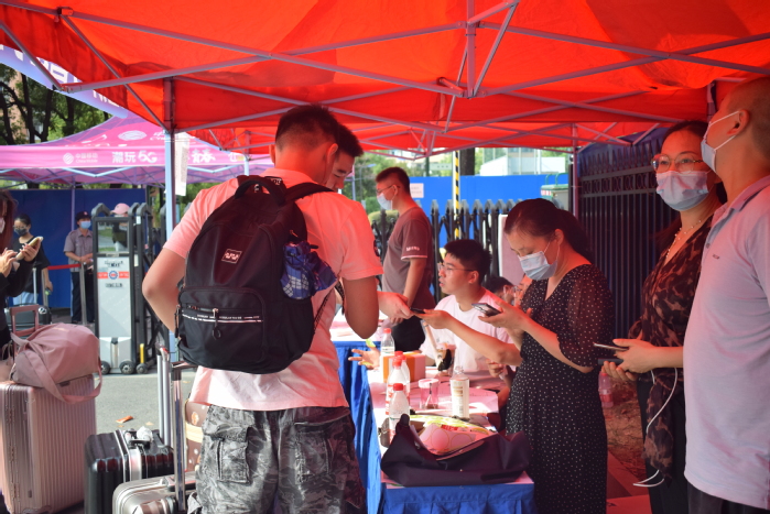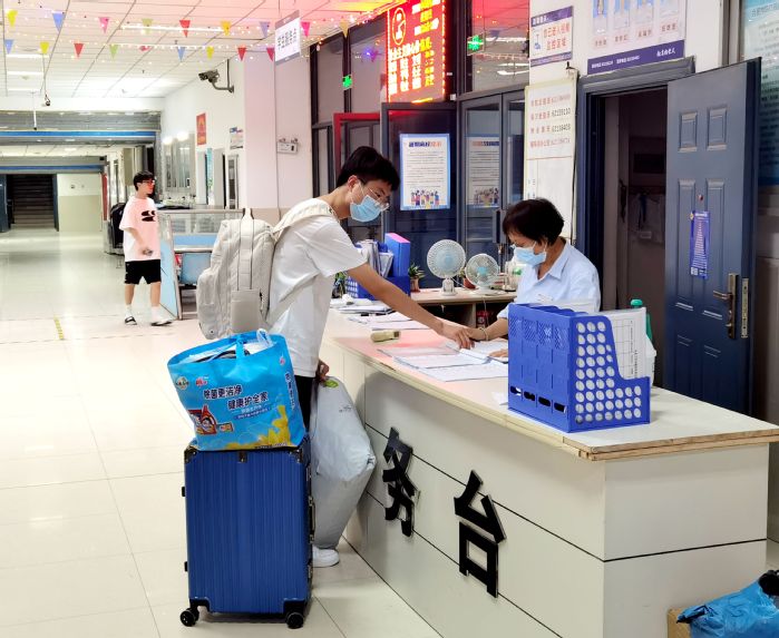 返校當(dāng)日,負(fù)責(zé)入校通道的教職工、學(xué)生志愿者早早來到現(xiàn)場(chǎng),按照疫情防控有關(guān)要求,為返校學(xué)生進(jìn)行體溫檢測(cè)、行李消殺、查驗(yàn)“安康碼”“行程碼”和48小時(shí)內(nèi)核酸檢測(cè)陰性報(bào)告,流程環(huán)環(huán)相扣,現(xiàn)場(chǎng)井井有條。校領(lǐng)導(dǎo)親切看望學(xué)生、慰問一線工作人員,詳細(xì)詢問各單位新學(xué)期各項(xiàng)工作準(zhǔn)備,了解學(xué)生返校工作流程和各環(huán)節(jié)運(yùn)行情況,并前往重點(diǎn)區(qū)域場(chǎng)所進(jìn)行了實(shí)地察看和現(xiàn)場(chǎng)指導(dǎo),檢查環(huán)境清潔、防疫物資儲(chǔ)備等各項(xiàng)情況。