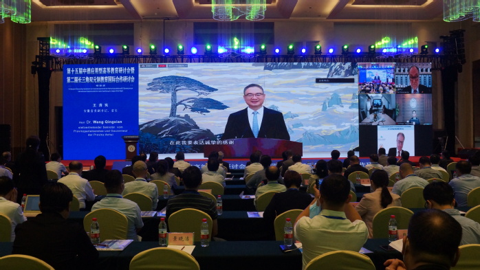 王清憲在致辭中說,安徽作為中國經濟最活躍的長三角區域的一員,高端制造業快速崛起,集成電路、新型顯示、新能源汽車等產業形成集群發展之勢,越來越需要高素質技術技能人才的支撐,要積極推動符合條件的高校向應用型深度轉型。安徽與德國應用型高等教育合作已有30多年,合肥學院與德國大陸集團合作共建“大陸班”,與大眾集團合作設立“大眾學院”,成為促進產教深度融合的典范。我們將全面融入長三角“雙元制”教育國際合作,積極推動省內更多高校與德國高校和企業合作,大力支持面向應用的新學科合作共建,培養更多兼備理論知識與實踐經驗的高素質技術技能人才。