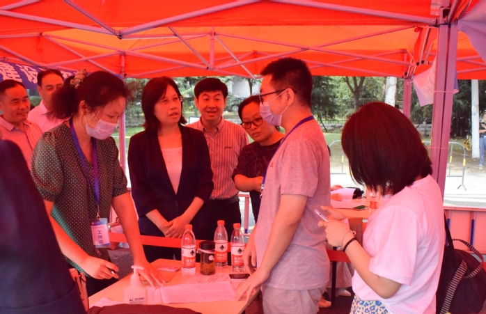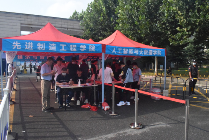校長吳春梅、研究生處、學(xué)生處、公共事務(wù)與國有資產(chǎn)管理處、后勤集團(tuán)負(fù)責(zé)人及各招生培養(yǎng)單位院長、書記親臨研究生報到點檢查指導(dǎo)迎新工作。校長吳春梅強調(diào)在疫情防控常態(tài)化條件下,相關(guān)單位和部門要細(xì)化各項服務(wù),確保新生入學(xué)報到工作平穩(wěn)有序、有條不紊。在經(jīng)濟(jì)與管理學(xué)院、人工智能與大數(shù)據(jù)學(xué)院、能源化工與材料學(xué)院、生物食品與環(huán)境學(xué)院等研究生分報到點,校長吳春梅與報到的新生親切交談,詢問新生來自哪里、本科畢業(yè)于哪所院校、研究生學(xué)習(xí)什么專業(yè)、報到是否順利等,勉勵他們盡快適應(yīng)學(xué)校新環(huán)境、進(jìn)入良好的學(xué)習(xí)狀態(tài),并現(xiàn)場看望了迎新點工作人員和學(xué)生志愿者。