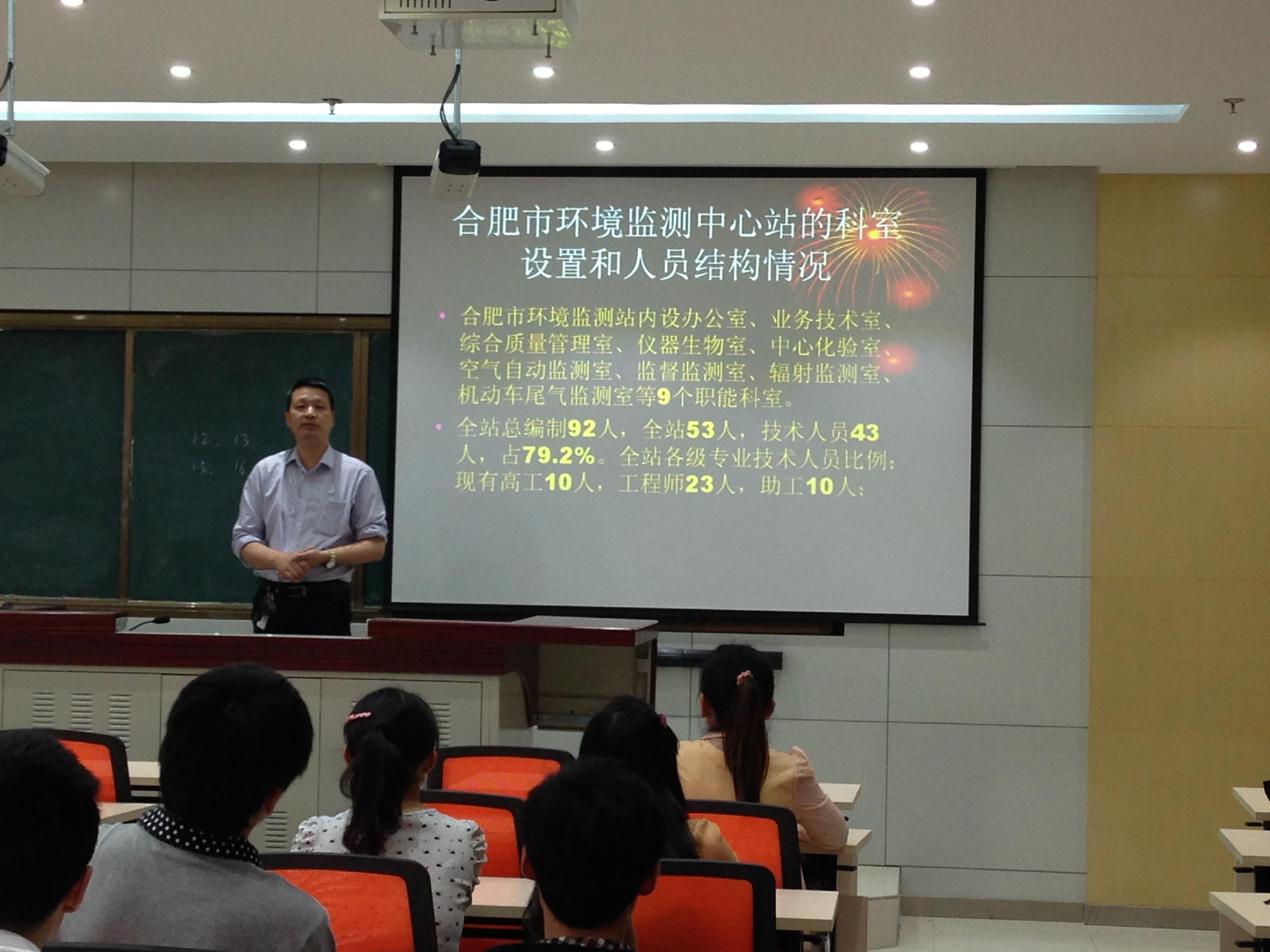 59日下午,“合肥市環(huán)境監(jiān)測的現(xiàn)狀和未來發(fā)展”的學(xué)術(shù)報(bào)告在我校35312報(bào)告廳舉行,報(bào)告會主講人是合肥市環(huán)境監(jiān)測中心站副站長李菁。我校環(huán)境工程專業(yè)研究生及部分導(dǎo)師到場聆聽。