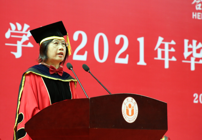 校長、校學位評定委員會主席吳春梅教授代表學校對同學們順利完成學業表示熱烈祝賀。在給2021屆畢業生的寄語中,她談道:“一代人有一代人的記憶。四年來,我們共同經歷了國家大事要事。從入學之初黨的十九大勝利召開,到2018年改革開放四十周年,從建國70周年的宏大盛典,到投身史無前例的抗疫斗爭,更是親眼見證了中國共產黨的百年華誕,踏上了實現第二個百年奮斗目標新的趕考之路。四年來,我們共同推動了學校高質量發展。學校連續兩年獲得國家科技進步獎,“雙元制”教育改革經驗廣受社會各界關注,得到孫春蘭副總理的充分肯定,省委省政府、市委市政府的大力支持,2020年,‘合肥大學’創建工作取得關鍵性進展。四年來,我們共同見證了同學們的蝶變成長,大家努力學習,刻苦鉆研,五育并舉,在各個方面都展示了自己的才華和風采……”