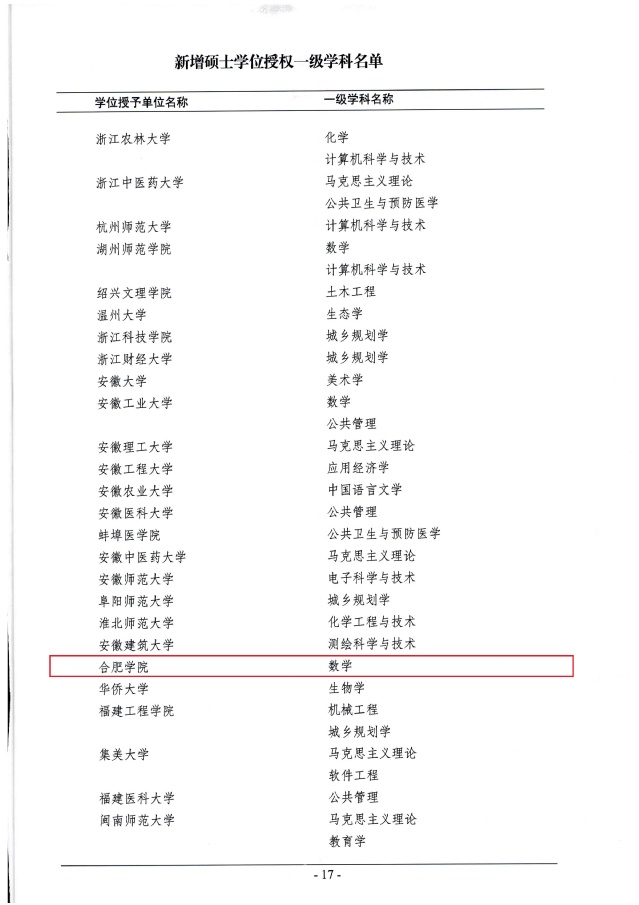 本次學位點申報,我校嚴格按照國家文件要求,以服務區域經濟發展、提高人才培養質量、鼓勵交叉學科為核心,結合學校學科發展規劃,精心做好申報材料的組織和論證工作,碩士點增量居全國高校并列第6位,安徽省第1位。