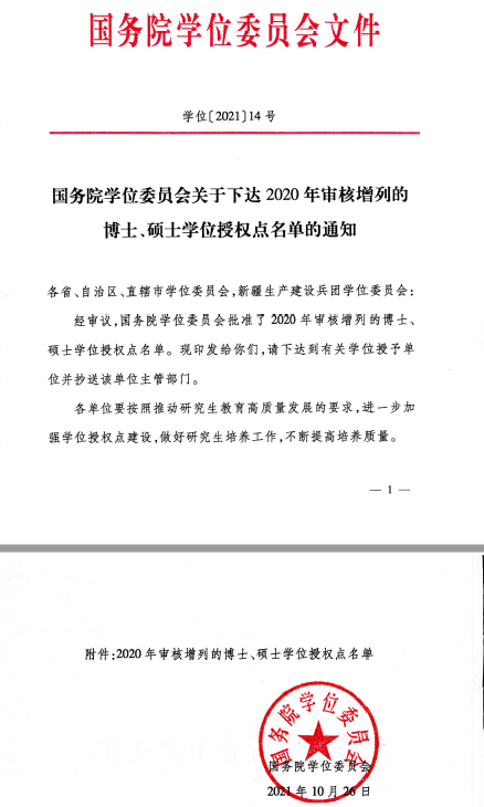 日前,國務院學位委員會印發《關于下達2020年審核增列的博士、碩士學位授權點名單的通知》(學位【2021】14號),我校獲批1個數學一級碩士點和金融等8個專業學位碩士點。目前我校現有碩士一級學位點2個,專業學位11類。
