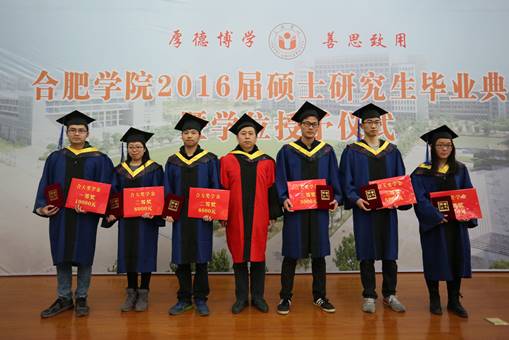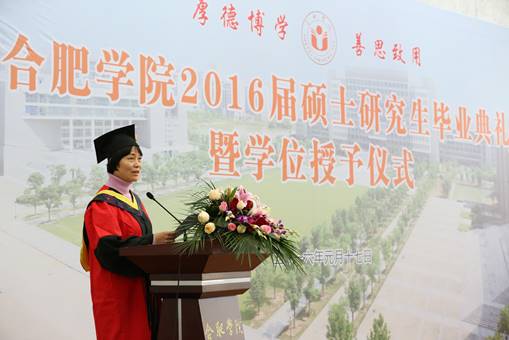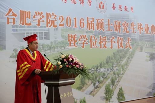 畢業典禮在莊嚴的國歌聲中開始。合肥學院碩士研究生學位評定委員會委員、校黨委副書記丁明教授首先宣讀了合肥學院碩士研究生學位評定委員會“關于授予2016屆環境工程專業徐芳麗等29名研究生工程碩士學位的決定”和 “關于表彰合肥學院2016屆環境工程專業碩士研究生科研成果獎、優秀畢業生、優秀畢業論文和‘合大環保獎學金’獲得者的決定”。