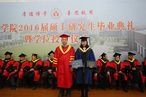 在莊嚴而神圣的學位授予儀式環節,2016屆碩士畢業生在全體師生的見證下依次從張文兵校長手中接過畢業證、學位證,接受撥穗,為自己過去兩年半的研究生學習畫上了圓滿的句號。