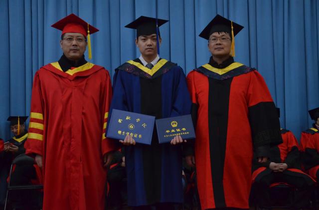 在莊嚴而神圣的學位授予儀式環節,2018屆碩士畢業生在全體師生的見證下依次從副校長劉建中手中接過畢業證、學位證,接受撥穗,為自己過去兩年半的研究生學習畫上了圓滿的句號。最后,全體師生合影留念。