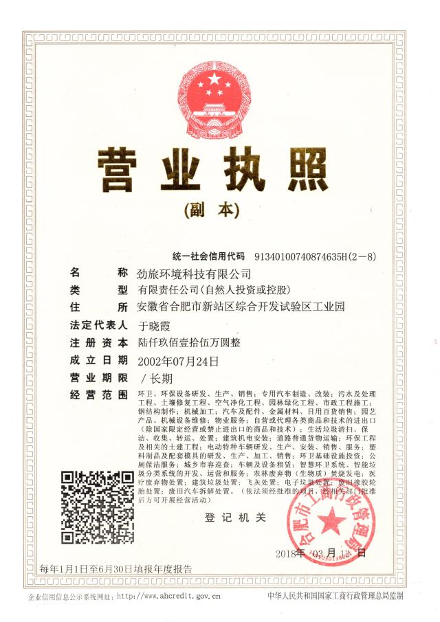公司目前以裝備制造、投資運營、設備租賃三大業務板塊為基礎,致力打造高水準的環境產業集團。公司具有一支團結高效、專業精干的團隊。公司秉承“清潔家園,美化環境,服務社會”的價值理念,本著“以人為本、客戶至上”的經營理念,以“互聯網+、高效、環保、智能”的服務理念,不斷延伸經營范圍和擴大完善產業鏈,從前端研發生產,到中端規劃運營,再到終端管理服務,形成覆蓋環衛領域的整體服務體系,搭建可持續、可循環的綠色服務平臺。現階段公司產品已覆蓋安徽省內各地市的城管、城建部門,并廣泛應用于山東、河北、河南、江蘇、湖北、湖南、江西、遼寧、云南、新疆等地區。目前,勁旅環境先后承接運營安徽省內各地、山東、江西、湖北、河南等地PPP項目,項目運營取得良好成果。
