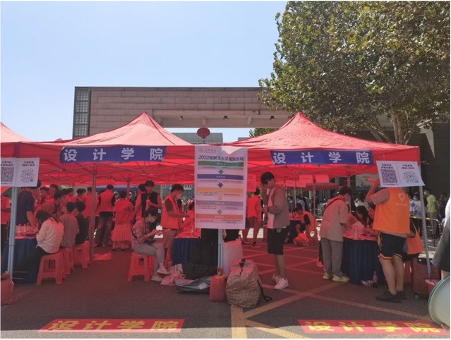 9月7日早上7點15分,設計學院新生報到志愿者們在老師們的組織指導下,有條不紊的展開了迎新工作。同學們身著統一的志愿者服裝,佩戴迎新志愿工作證,為來自全國各地的設計學院2022級新生提供報名服務。