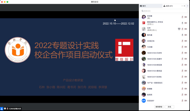 10月9日晚八時,合肥學院設計學院產品設計專業與壹佳設計共同開展了產品設計課題專題研討會。壹家設計的創始人及總經理李宗會蒞臨會議講學。設計學院黨委書記魯先瑾、教學副院長潘峰、產品教研室主任石林等老師,以及19級產品設計專業學生參加了本次設計課題的線上研討會。