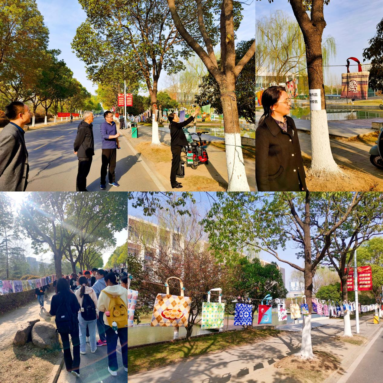 本次創作主題“傳承創新”,教師引導學生思考:如何將思政元素“中華優秀傳統文化”傳承創新。學生們結合“地域文化和非遺文化”腦洞大開,設計出各式各樣的圖案并印刷在筆記本、絲巾、帆布袋等物品上,讓設計從電腦走入生活,做到學以致用。形式多樣、趣味十足的教學方式極大地調動了學生的學習積極性,潤物無聲地將課程思政與專業課程緊密融合。此次活動受到了學生們的一致好評,并吸引了許多其他學院的學生駐足觀看,紛紛拍照留念轉發朋友圈。既服務于全校學生藝術素質教育,又擴大了課程思政影響力。