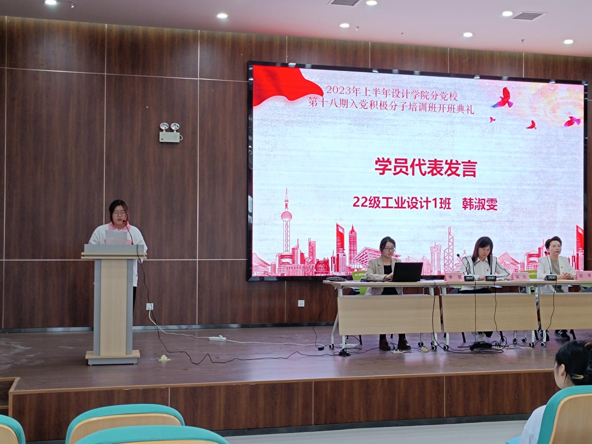 開班典禮第一項,全體奏唱國歌。隨后22級工業設計1班韓淑雯同學作為學員代表進行表態發言,號召同學們端正入黨動機,認真學習黨的創新理論和科學文化知識,端正學習態度,講究學習方法,提高學習效果。