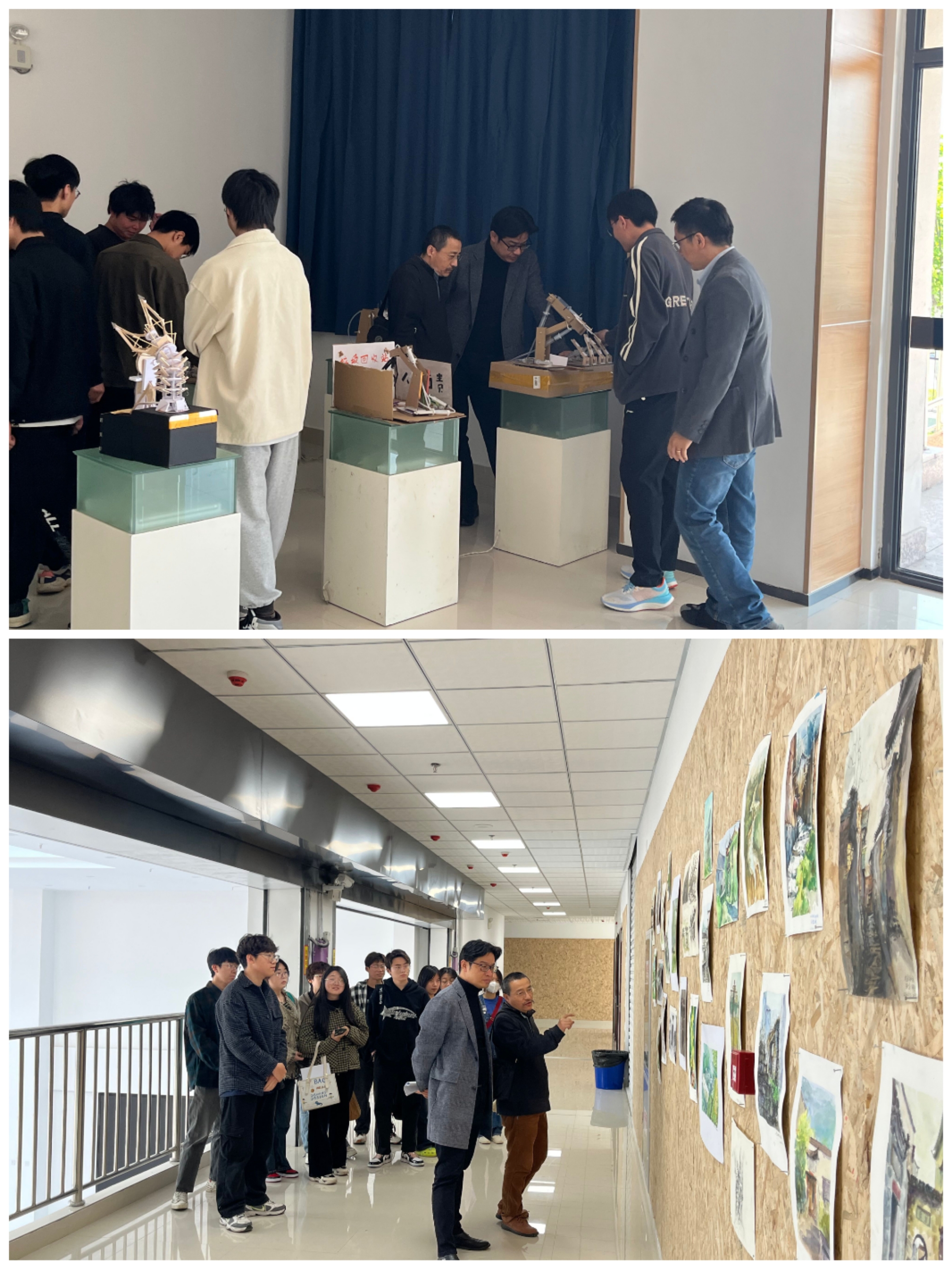 同時,由設計學院22級藝術與科技、產品設計、動畫、工藝美術、環(huán)境設計、視覺傳達設計專業(yè)共同承辦的皖南寫生匯報展在55棟-1樓大廳舉行。設計學院六位老師全程指導參與學生的學習及生活,同學們體會到了繪畫技巧、觀察方法以及色彩搭配的實際應用,受益匪淺。