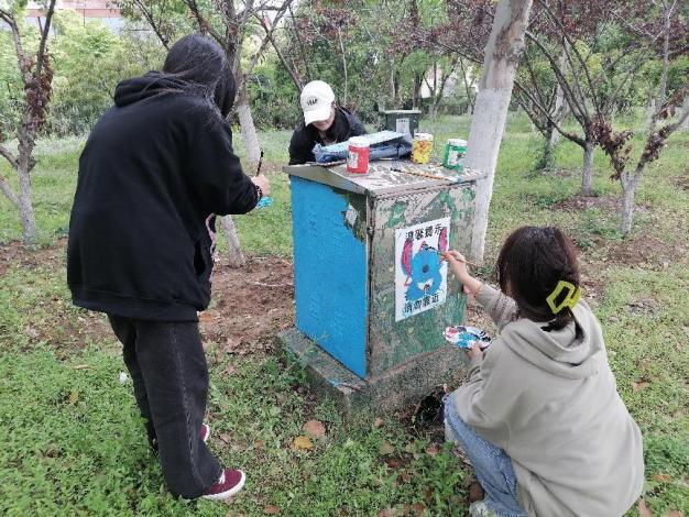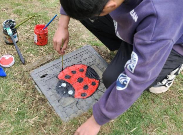 學生黨員在電箱、井蓋上進行彩繪
