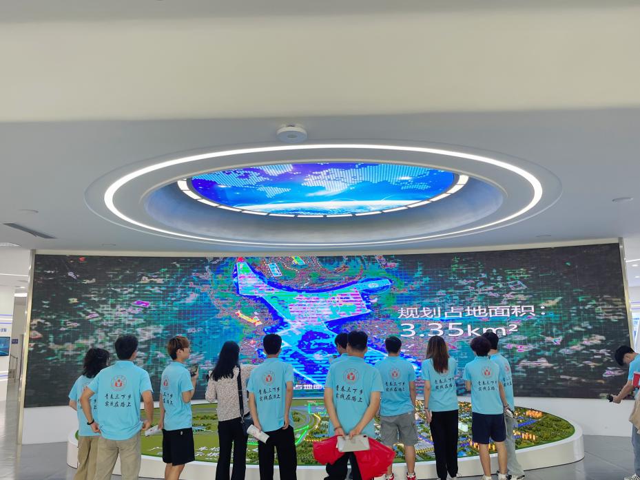 圖為三下鄉實踐團隊觀看廣德汽車檢測小鎮沙盤布局