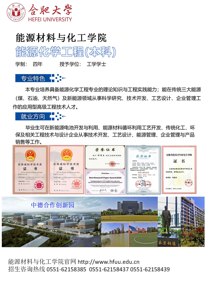 能源化學工程(本科) 咨詢電話:0551-62158385