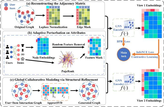 圖增強策略優化圖對比學習的推薦系統結構圖