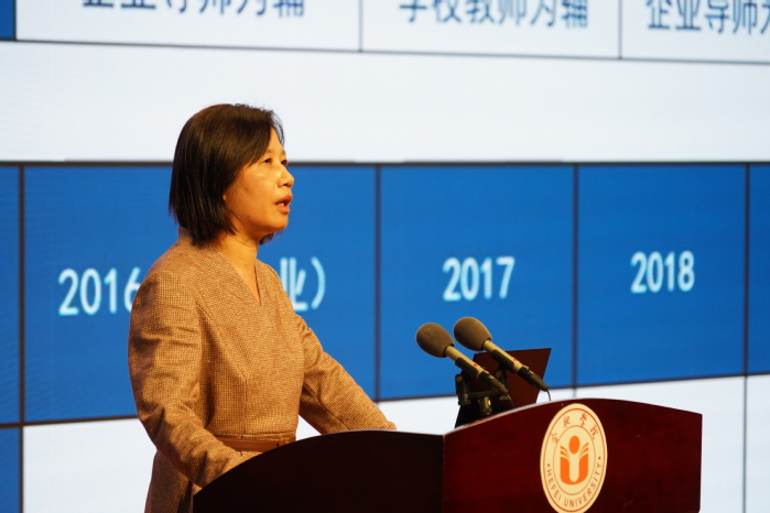 合肥學院校長吳春梅教授作題為《“專業、就業、產業”三業一體人才培養模式改革考察》的報告。她表示,合肥學院“三業一體”的人才培養模式,立足產業發展,圍繞重點產業設置專業,建立動態專業調整機制,培養具有國際視野和創新實踐能力的人才。近年來,我校借鑒德國雙元制教育模式,與企業在高等教育領域開展廣泛合作,讓學生的能力與企業的需求無縫對接。她表示,中德教育合作離不開政府的支持和企業的參與,合肥學院會繼續積極與德國開展交流探討,在培養應用型人才方面做出更大成績。