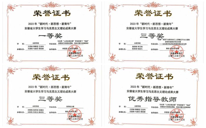 日前,由安徽省教育廳主辦的2023年“新時代?新思想?新青年”安徽省大學生學習馬克思主義理論成果大賽圓滿落下帷幕,評審結果已在安徽省教育廳網站公布。本次比賽是我省馬克思主義理論學科唯一的大學生學科與技能競賽,我校馬克思主義學院連續(xù)四年組織學生參賽,本次選送的作品榮獲一等獎1項、三等獎2項。