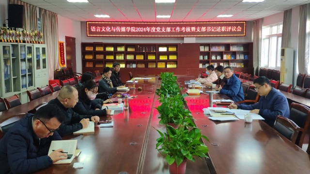 按照校黨委組織部《關于開展2024年度黨支部工作考核和黨支部書記述職評議考核工作的通知》要求,1月13日下午,語言文化與傳媒學院黨委在學院大會議室召開2024年度黨支部工作考核暨黨支部書記述職評議會。院黨委領導班子成員、科級干部及各黨支部書記參加,會議由院黨委書記儲昭輝主持。