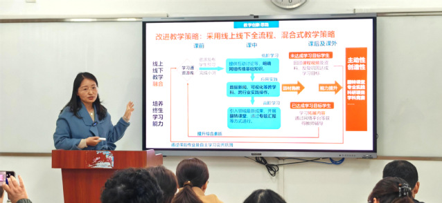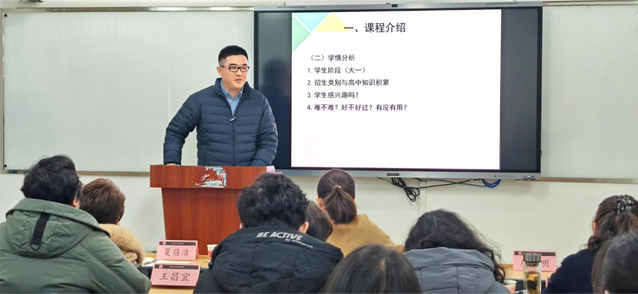 在比賽中,參賽教師們聚焦立德樹人根本任務,堅持學生中心,緊扣培養目標,參賽的青年教師們精心進行教學設計,認真進行微課教學環節展示,儀態大方、從容自信,語言流暢、條理清晰,充分利用教具、多媒體、云端資源等多種教學媒介進行了精彩的教學展示,創設教學場景,凸顯課程思政元素的融入,強化智慧教學手段的創新運用,充分展現青年教師的教學風采和進取精神。