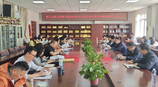 4月8日下午,語言文化與傳媒學(xué)院在學(xué)院大會議室召開2025年全面從嚴(yán)治黨暨黨風(fēng)廉政建設(shè)工作會議,學(xué)院全體教師參加會議,會議由院黨委書記儲昭輝主持。
