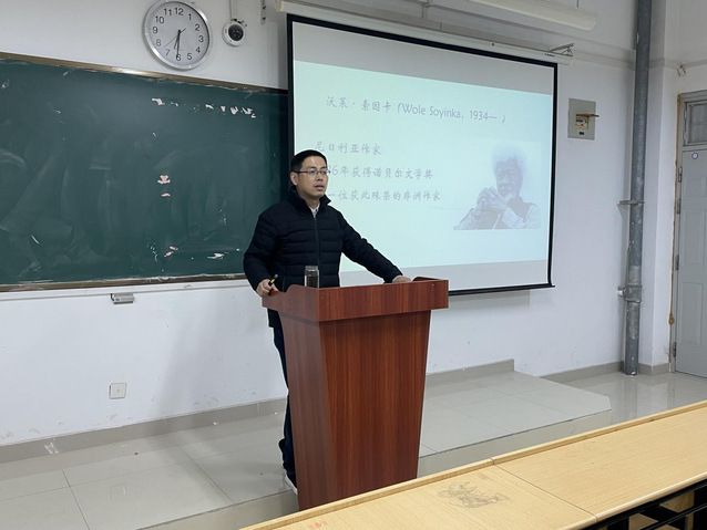 講座伊始,殷明明老師為同學們介紹了幾位與非洲關系密切的獲得諾貝爾文學獎的作家,并詳細分析了《死亡與國王的侍從》這本書中反映現實的“人祭”情節。殷明明老師指出在當今社會,生命權已經被確立為一項基本的、不言自明的基本權利。接著,殷明明老師提出了從文化認同到文化抗爭,非洲作家在作品中表現出強烈的反抗精神對人權意識的重視、對歐洲文化的抗爭是非洲作家自我覺醒的重要體現。最后,殷明明老師指出面對文化侵略,非洲不像中國有足夠的文化底蘊與自信,他們過度放大自己的文化特點希望提升自信反而會造成文化焦慮,從而產生文化幻覺。本次講座在同學們熱烈的掌聲中圓滿結束。