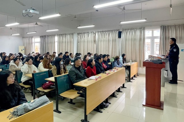 為深入踐行電信網絡安全觀,鞏固加強大學生識別電信詐騙、網絡詐騙的知識,進一步增強全體師生防詐騙安全意識,1213日上午,語言文化與傳媒學院在5307召開預防電信網絡詐騙專題講座。此次講座邀請到蓮花派出所民警蔣勇前來主講,校保衛處治安科科長王良斌、院黨委副書記張愛萍、院學工辦主任顧盼盼、輔導員柳守志以及全體學生代表出席會議。